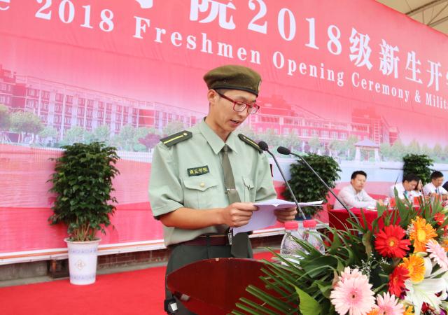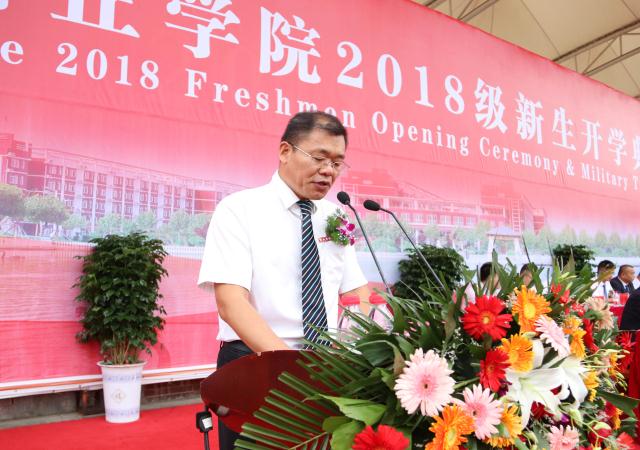 程印学代表学校,向2018级新生的到来表示热烈的欢迎,向付出心血汗水的家长们致以崇高敬意,向担任2018级新生军训任务的各位教官表示衷心感谢。他指出,金年会金字招牌根植中原文化沃土,传承华夏文明精粹,坚持以人为本、德育为先、能力为重、质量为根、传承创新、追求卓越的办学理念,秉承“弘德明志,知行合一”的校训,形成了“敬业、爱校、求是、创新”的优良校风。校园景观承载着学校文化的厚重与绵长,见证着金年会金字招牌人的拼搏与梦想。新世纪“00后”的到来为金年会金字招牌注入了新时代的青春活力。