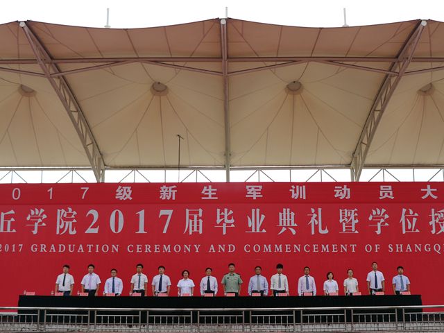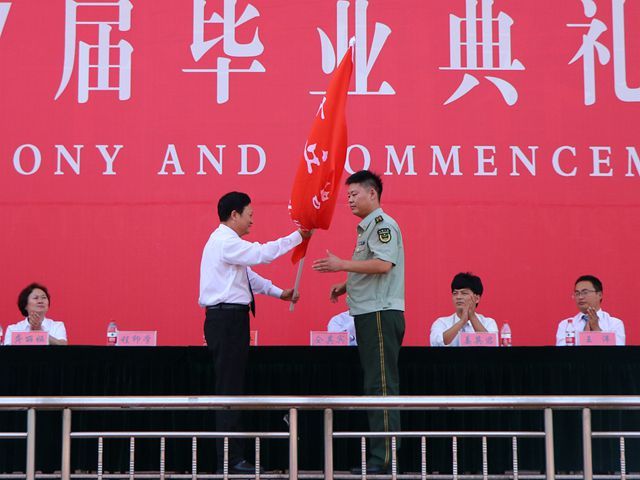 九月激情飞扬,热血沸腾,朝气蓬勃。9月1日下午,我校于田径场顺利举行2017级新生军训动员大会。出席本次大会的领导有:我校党委副书记、常务副校长程印学及河南省武警总队少校张振江。各分院党总支副书记、参训教官、新生辅导员及全体17级新生参加此次大会。大会由学生处处长张再望主持。 程印学发表讲话。他首先代表学校领导和全体师生向前来我校帮助军训的全体教官表示热烈欢迎和衷心感谢!向为军训辛勤工作的老师们和积极参训的同学们表示亲切慰问和美好祝愿! 程印学在讲话中指出,军训意义重大,影响深远,对于提高综合素质、增强国防意识、培养良好作风,都具有不可替代的作用。他希望同学们在军训过程中,培养出组织纪律观念和艰苦奋斗的精神。同时,他对新生提出三点期望:一是全身心投入到军训中,坚决完成军训任务;二是顽强拼搏,争创军训优良业绩;三是讲文明讲礼貌,牢固树立安全意识。 军训乃开学第一课,校领导的深切期盼,点燃了新生的热情之火,激发新生的斗志。 张振江讲到,大学生军训是加强爱国主义、集体主义教育的重要内容;是贯彻党的教育方针,提高学生综合素质,培养德、智、体全面发展的建设者和接班人的重要途径;更是增强学生基本军事知识技能,提高组织记律性和自我管理能力的重要环节。他表示,此次军训将是大学生的第一节教育课,对学生人生道路留下深深的印记,对塑造大学生人格十分重要。他对学生提出三点要求:一是加强组织纪律性,一切行动听指挥;二是不怕困难,刻苦训练;三是自始至终参加训练,争先创优展风采。 赤日当空,但教官热情不减;汗水连连,教官仍精神满满;亦师亦友,共同训练,共展军人之英姿,共学军人之品质。 学生代表杜姿霖上台发言。她提出,军训是一个大课堂,是磨练意志、锻炼体格的良好途径,是品味苦尽甘来,学会自立、自强的一次洗礼。她承诺,在接下来的军训中,会尊重教官、团结友爱、不畏困难,以积极向上的心态对待军训。 热情洋溢、朝气蓬勃,这是我校17级新生精神面貌的真实写照,新生代表的发言,展现我校学子“弘扬自强不息之美德,展现勤奋好学之面貌”的坚定决心。 参训教官为受训同学做军训示范动作展示。随后,程印学为乘训部队授旗。 张再望表示,同学们要以自强不息的校园美德和积极向上的态度迎接军训,争当军训标兵,以军人的气魄、军人的修养严格要求自己,为自己的大学生活添上重彩的一笔。(转自学校官网)
