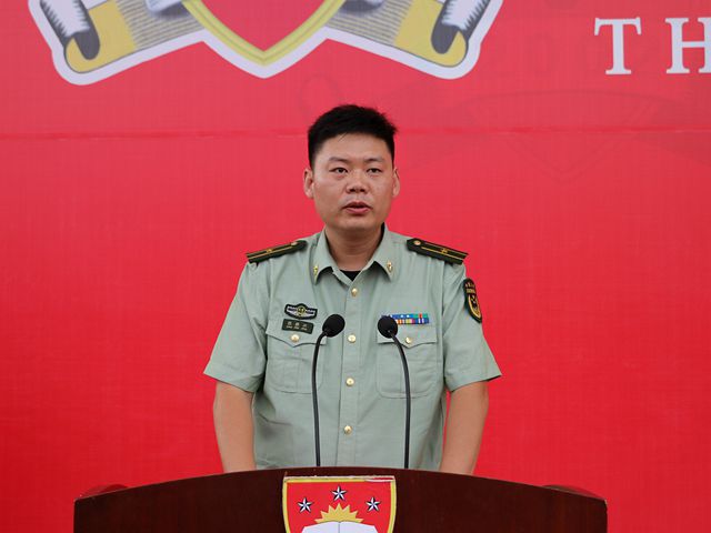 河南省武警总队少校张振江发表讲话(校报摄影记者 张誉瀚/图)