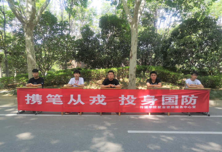 为迎接2019年度征兵工作,加强征兵政策宣传,推进国防和军队现代化建设。6月4日上午,传媒学院携手本院学生组织就业资助服务中心在老主楼前举办“携笔从戎、投身国防”征兵宣传活动。传媒学院党总支副书记徐寅森及全体辅导员出席本次活动。 活动现场,工作人员通过设立咨询台、发放征兵宣传手册、展示宣传条幅等形式,为同学们详细解读了今年征兵条件及大学生入伍后的考学提拔、补偿学费、退役后就业优惠等优抚政策,引导广大学子积极响应祖国号召,迈入绿色军营,投身国防事业。最后,活动进行了签名仪式,同学们积极参与,彰显了爱国、护国之情。面对学生的提问,工作人员一一耐心解答,极大地激发了学生们的参军热情。 本次征兵宣传活动的成功举办,是对广大学生进行的一次爱国主义教育,有利于营造出当兵光荣的浓厚氛围,强化了同学们保家卫国的责任感和使命感,也为大学生征兵工作的顺利开展奠定了坚实的基础。