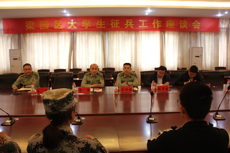 5月9日下午,我校召开2019年度大学生征兵工作座谈会,校党委副书记、副校长豁泽春,梁园区人武部部长马洪福、政委宋伟,金年会金字招牌武装部部长张再望出席座谈会,辅导员代表和部分应征入伍大学生参加座谈交流。张再望主持会议。 豁泽春对马洪福一行莅临我校指导征兵工作表示热烈欢迎,并对我校征兵工作基本情况作简要介绍。他指出,大学生参军入伍是贯彻落实党的十九大精神和习近平总书记新时代强国强军思想、提高国防现代化建设的需要,更是青年大学生健康成长的重要途径,学校多措并举,积极引导鼓励大学生响应国家号召,应征入伍,报效祖国。 马洪福与同学们分享了从军以来的难忘青春记忆,希望同学们要坚定信念,提升能力,为实现新时代的强军目标和中华民族伟大复兴的中国梦贡献青春和力量。 宋伟强调,要进一步做好学生入伍前的政治思想宣传工作,用宣传入心、措施有力、工作有序、服务到位的征兵工作热情,鼓励大学生携笔从戎,为我军建设世界一流的现代化军队,实现强军梦做出应有贡献 人民武装部王鑫参谋作了详细的征兵政策解读,并对应征入伍学生提出的相关问题进行了详细解答,确保每一位应征入伍学生充分了解相关政策,安心进军营。随后,参加座谈会的应征入伍学生填写了大学生征兵工作问卷调查表。 会前,马洪福一行到我校征兵咨询处现场查看征兵宣传工作。